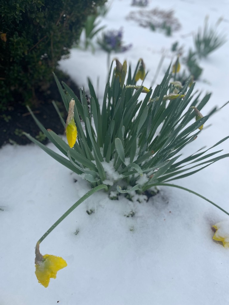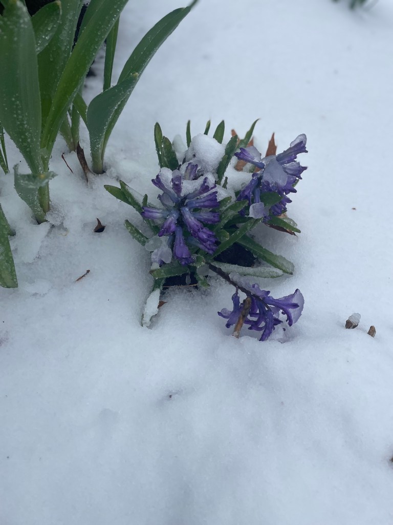 It’s April in Boston. Flowers are blooming, birds are returning. Weather is warming up…or so we thought! Then, it snowed! Yup, a Nor’Easter that dumped inches of snow. Yet at this point of the year, it’s one last gift from Mother Nature. To see colorful tulips and daffodils drenched in white is a sight to marvel. While another snow delay could easily be a nuisance, I rethink this morning as one to be cherished. I slow down to enjoy the view from my window, bundle up as I go take pictures of images too beautiful to ignore. I am filled with gratitude for this unintentional moment, breathing a little deeper, fully treasuring where I am. ❤︎